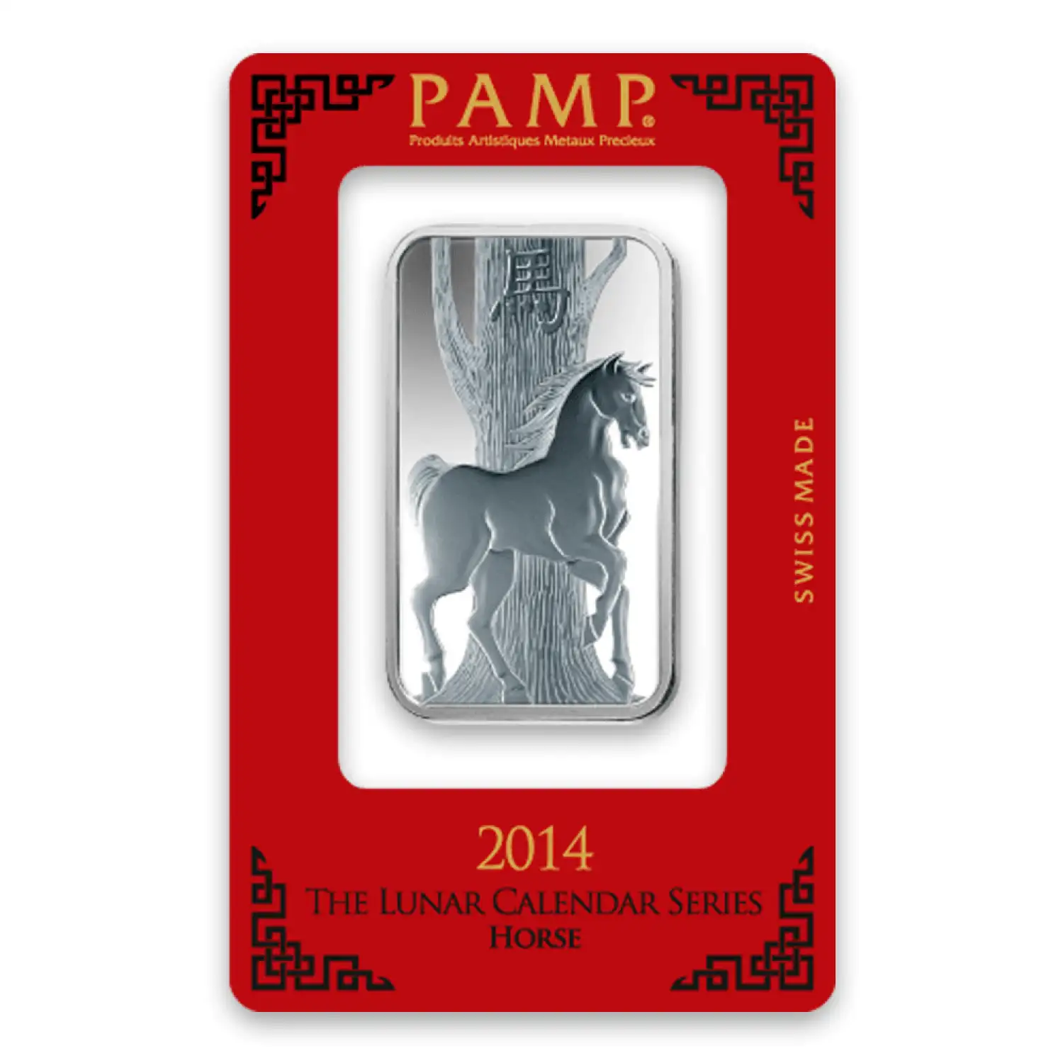 Buy the high-quality, magnificent 1oz PAMP Silver Bar - Lunar Horse today from us online! The latest silver price is updated on our website every minute.