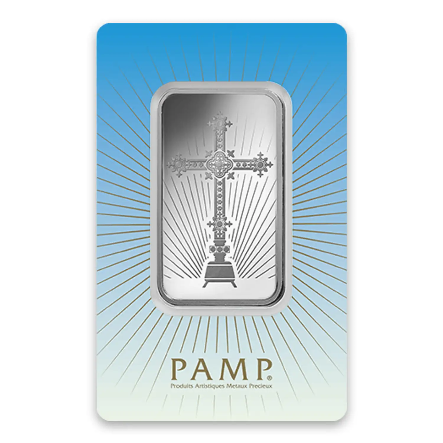 Buy the high-quality 50g PAMP Silver Bar - Romanesque Cross today from us online! The current silver price is updated on our website every minute.