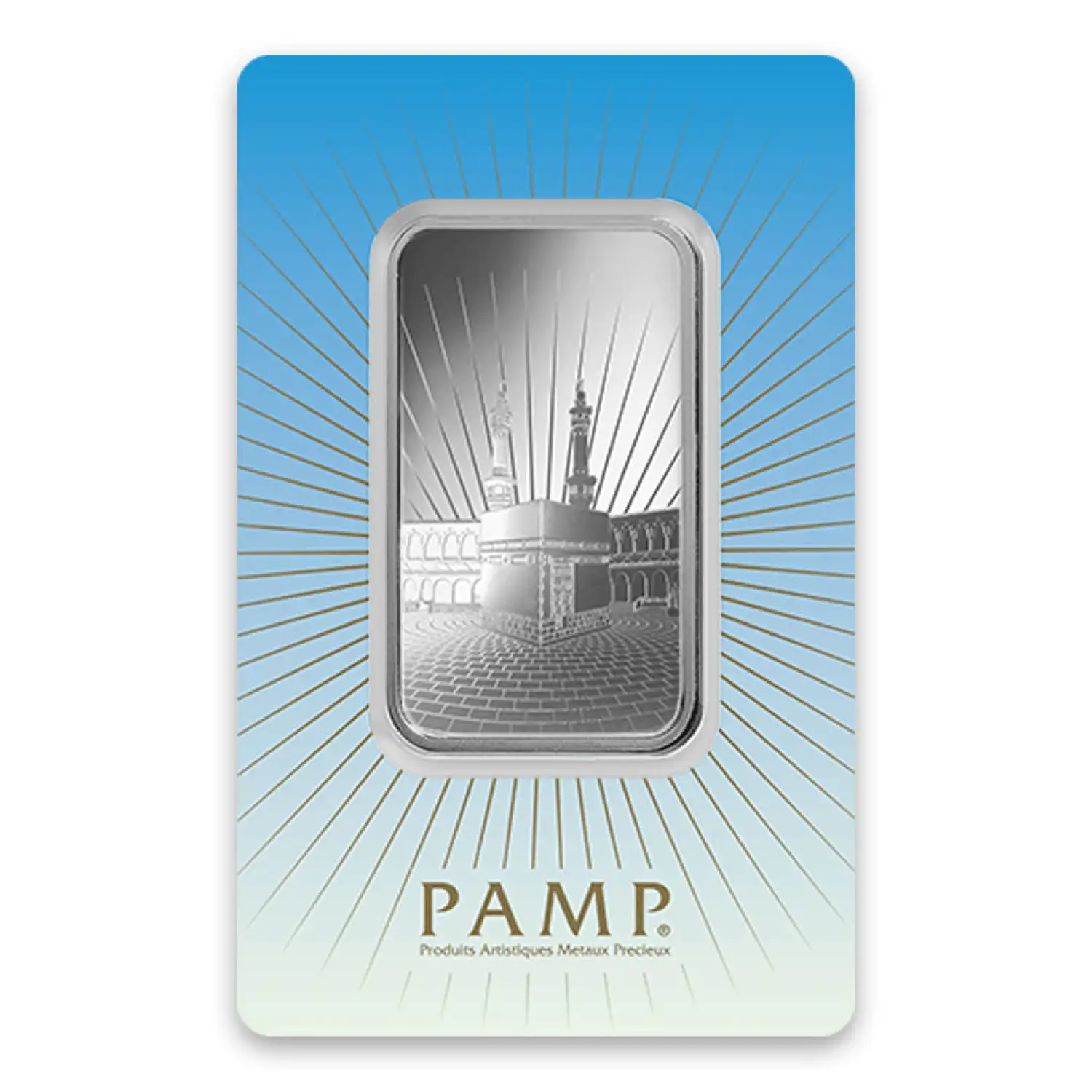 The 50g PAMP Silver Bar - Ka `Bah. Mecca contains 50 grams of .999 fine silver, featuring Mecca which is the holiest city in the religion of Islam.