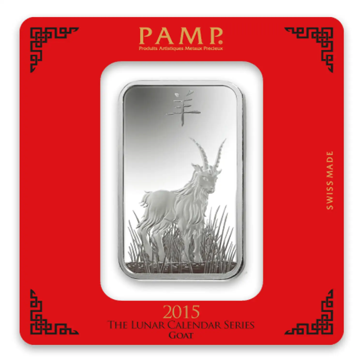 Manufactured in Switzerland, each 100g PAMP Silver Bar - Lunar Goat is composed of 100 grams of .999 pure silver. This beautiful silver bar features a goat design for the Chinese Zodiac series on the obverse.