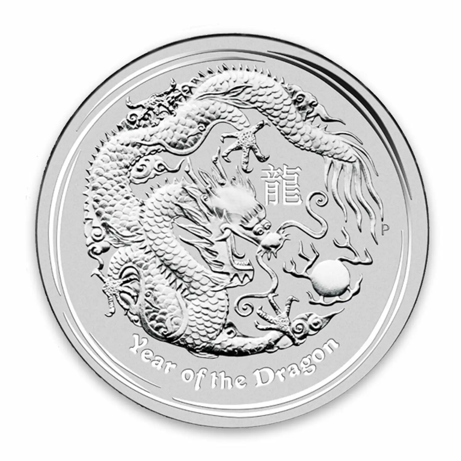The 2012 1/2 oz Australian Perth Mint Silver Lunar II: Year of the Dragon coins are highly anticipated around the globe. Struck from .999 fine silver, this bullion coin weighs 1/2 troy ounce. These beautiful silver coins appeal to investors and collectors for their beautiful design.