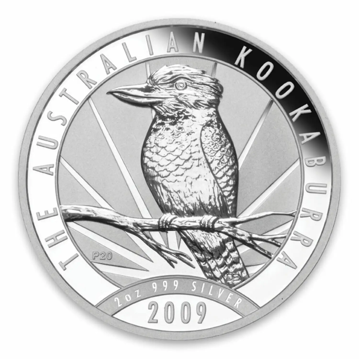 Struck by the Perth Mint, the Silver Kookaburra series appeals to both investors and collectors for its iconic design and pure silver content. Each 2009 2 oz Australian Perth Mint Silver Kookaburra contains 2 troy ounces of .999 fine silver.