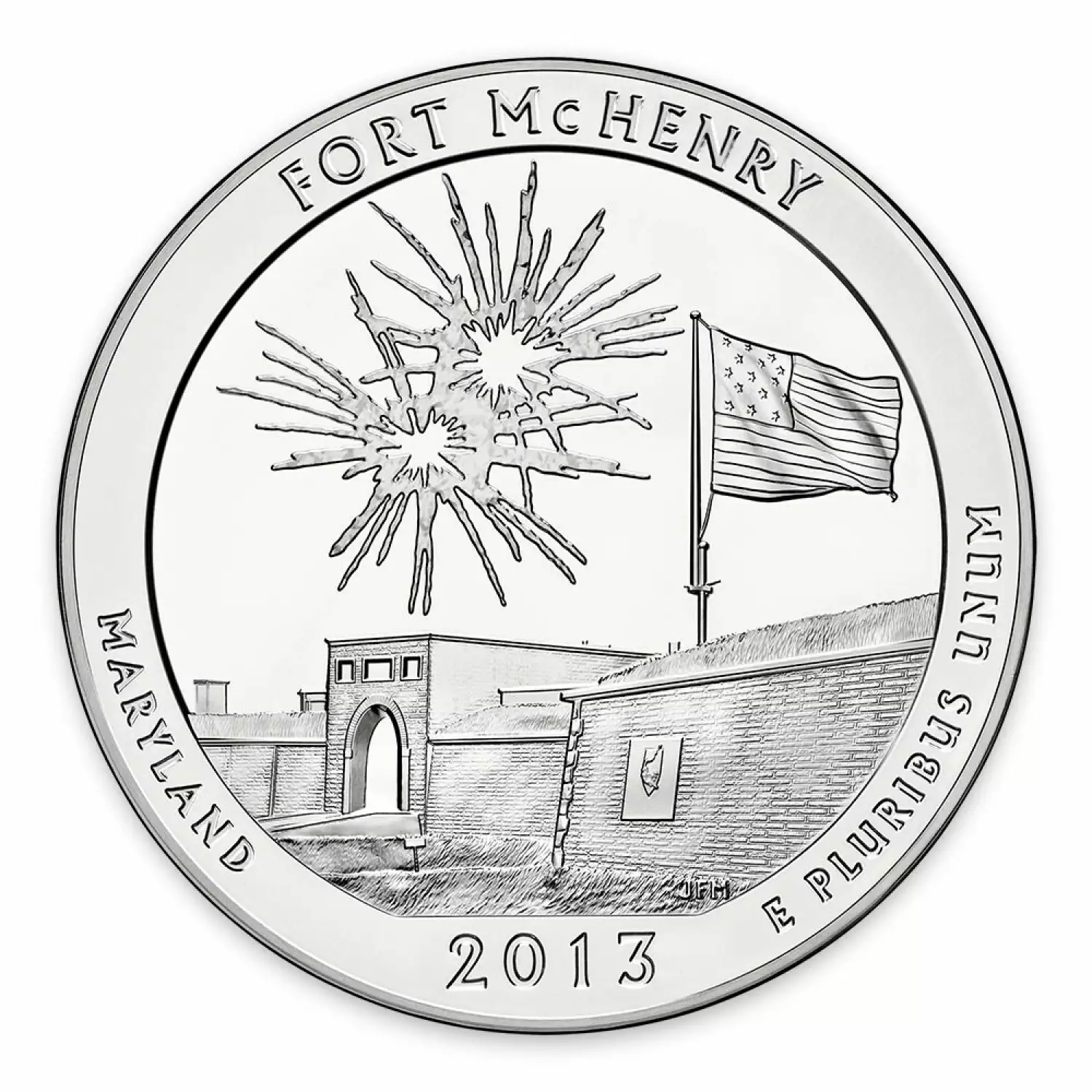 Since 2010, the US Mint released five silver America the Beautiful coins annually. The 5oz silver coins will be complete in 2021, each representing a historical monument or a treasured national park. These bullion coins were introduced following the success of the state quarter program.Fort McHenry is a historical American coastal pentagonal bastion fort located in the Locust Point neighborhood of Baltimore, Maryland. It is best known for its role in the War of 1812, when it successfully defended Baltimore Harbor from an attack by the British navy from the Chesapeake Bay on September 13–14, 1814. It was first built in 1798 and was used continuously by the U.S. armed forces through World War I and by the Coast Guard in World War II.