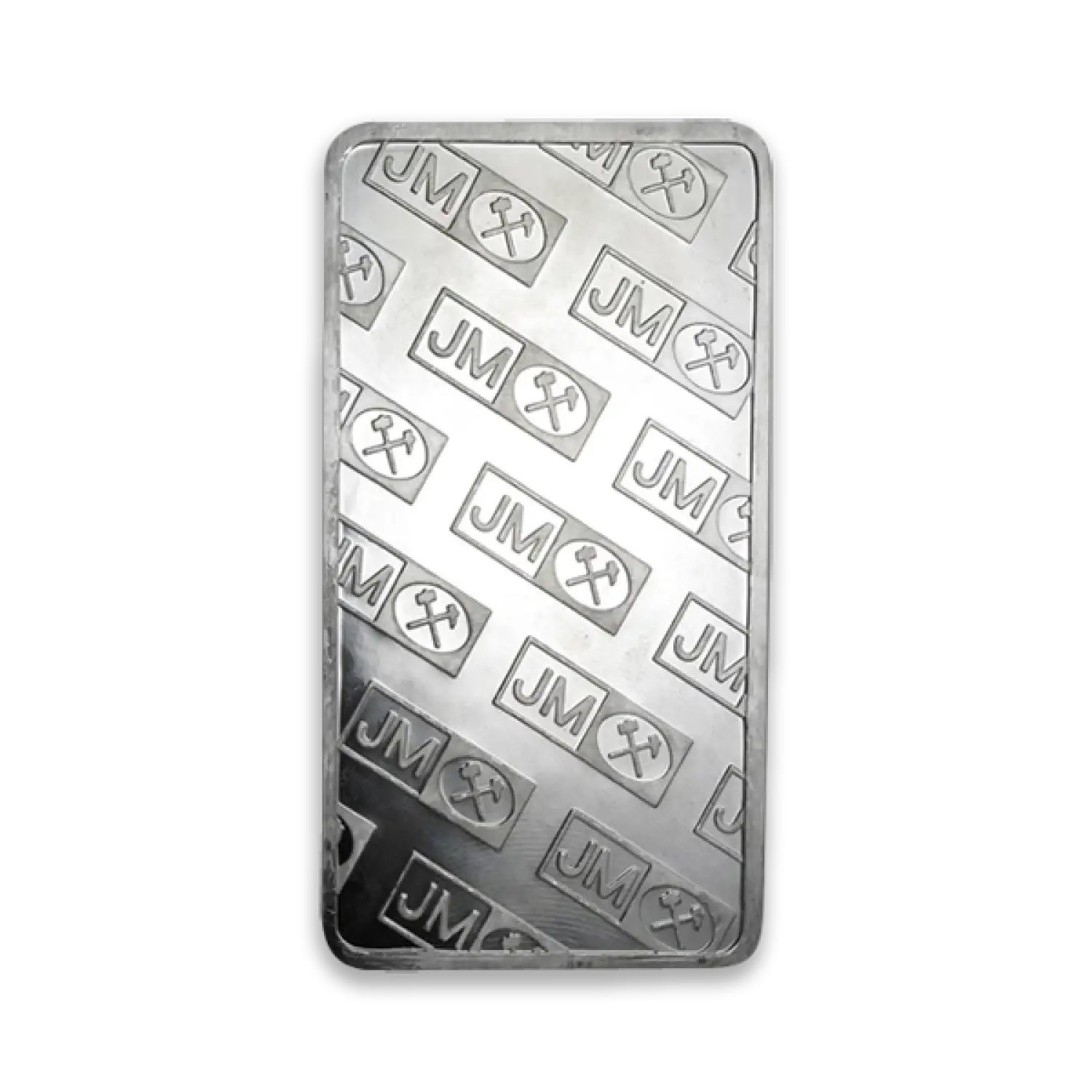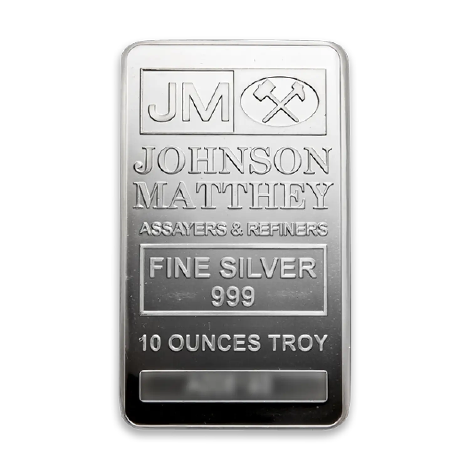 Johnson Matthey is known for its high-quality minting and is extremely popular in the precious metals industry. The 10oz Johnson Matthey Silver Bar is composed of 10 troy ounces of .999 fine Silver. The obverse of the silver bar displays the JM logo, weight, purity, and a unique serial number, while the reverse may feature diagonally-oriented, repeating JM hallmarks or be blank.