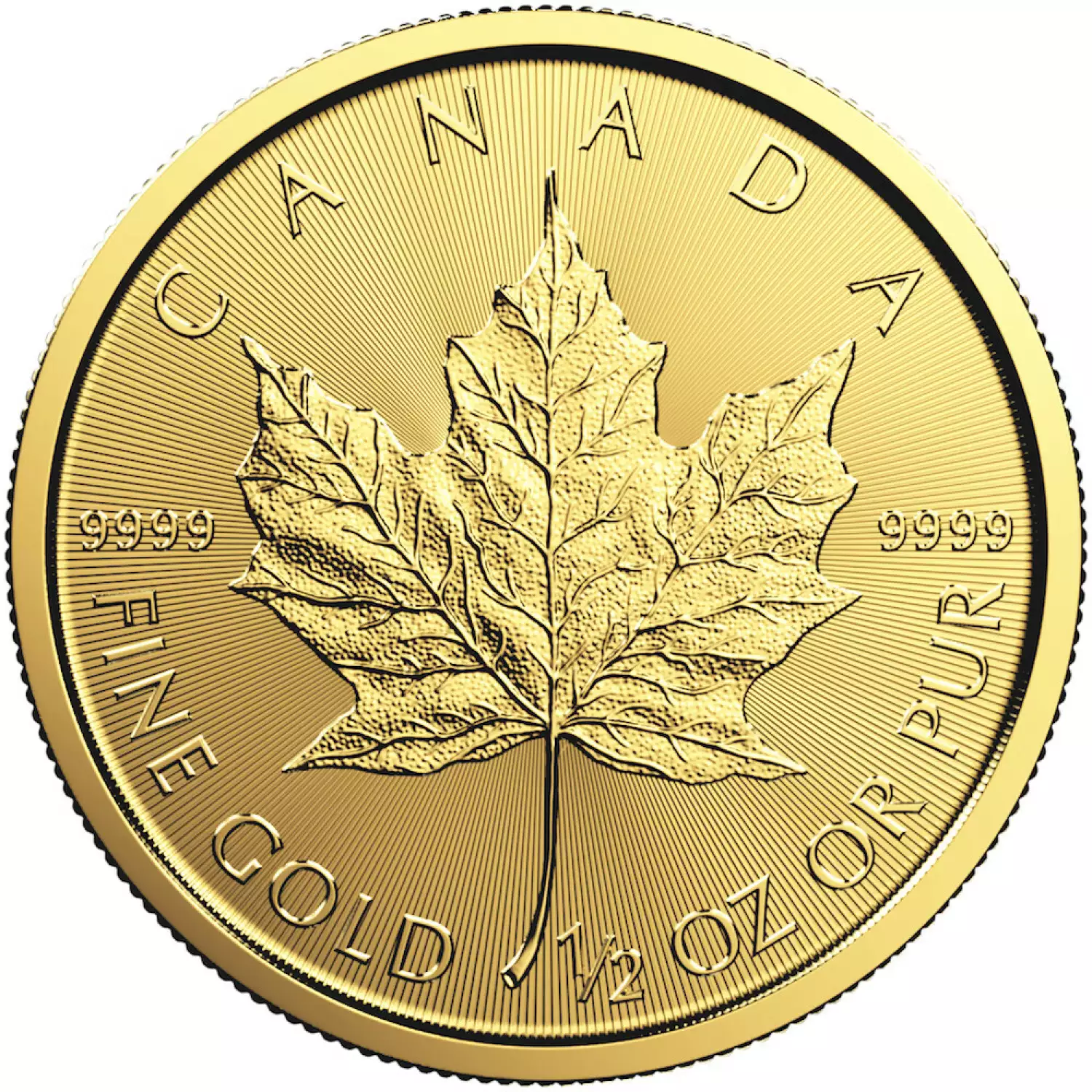 The Canada Gold Maple Leaf coins are considered one of the most iconic gold coins in the world. The classic design and high bullion content of these coins make them a great investment. Minted by the Royal Canadian Mint, the 1/2 oz Canadian Gold Maple Leaf contains 1/2 oz of .9999 fine Gold with a face value of $20 CAD.