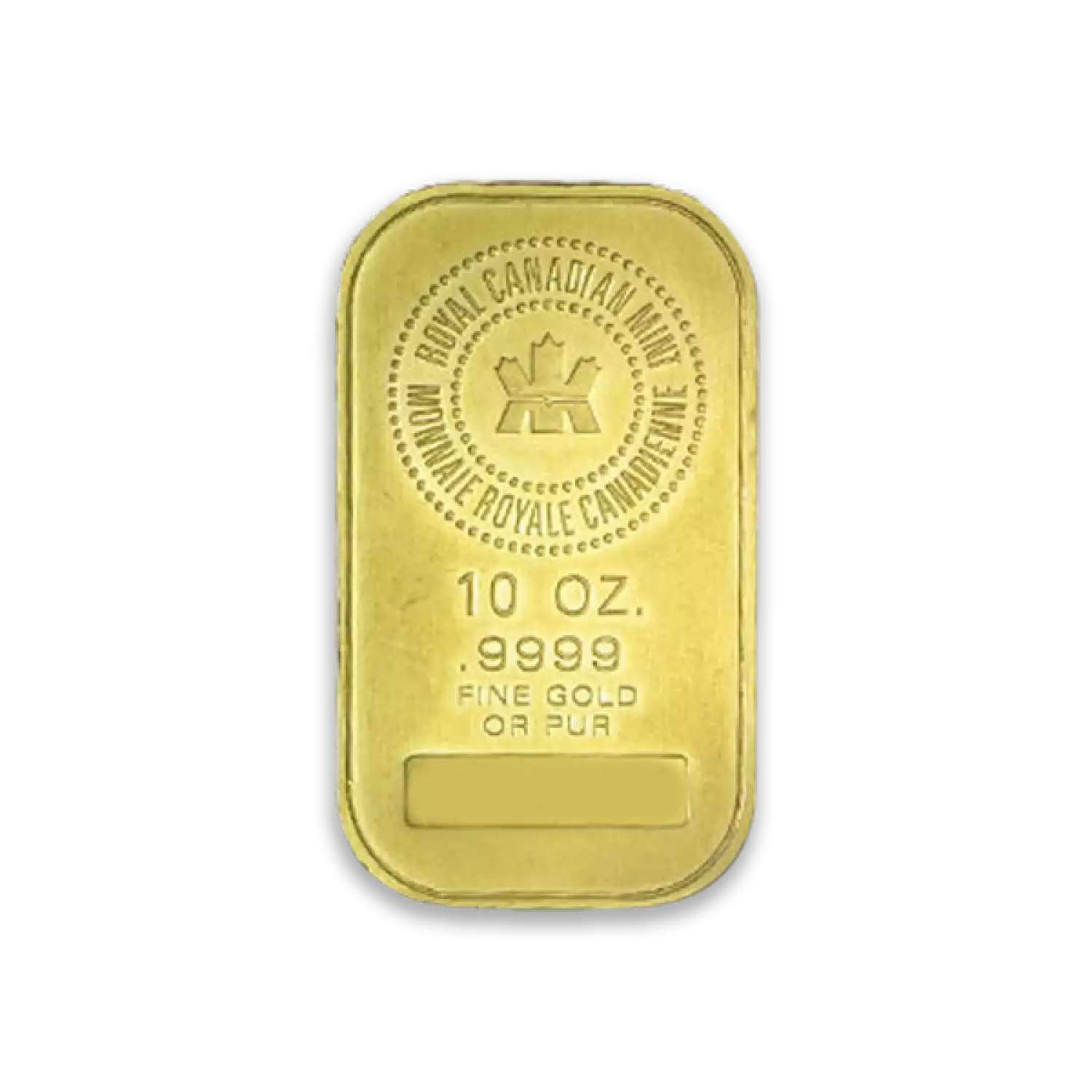 Royal Canadian Mint Gold bars are renowned worldwide. We invite you to compare our reputation and gold prices with other local or national gold dealers. Buy the 10 oz RCM Gold Bar from us online today.
