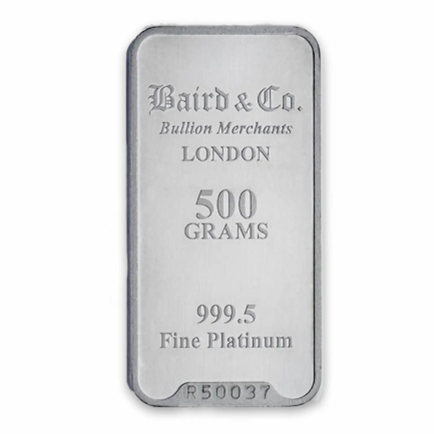 Platinum bars are available in three different types i.e. cast, minted or extruded. Manufactured by Baird Co in the UK, each 500g Baird Co Platinum Minted Bar contains 500 g of .9995 fine platinum. These stunning platinum bars appeal to both investors and collectors for their iconic designs. Platinum bars and platinum coins may tend to tarnish over time depending upon the environment they are stored.