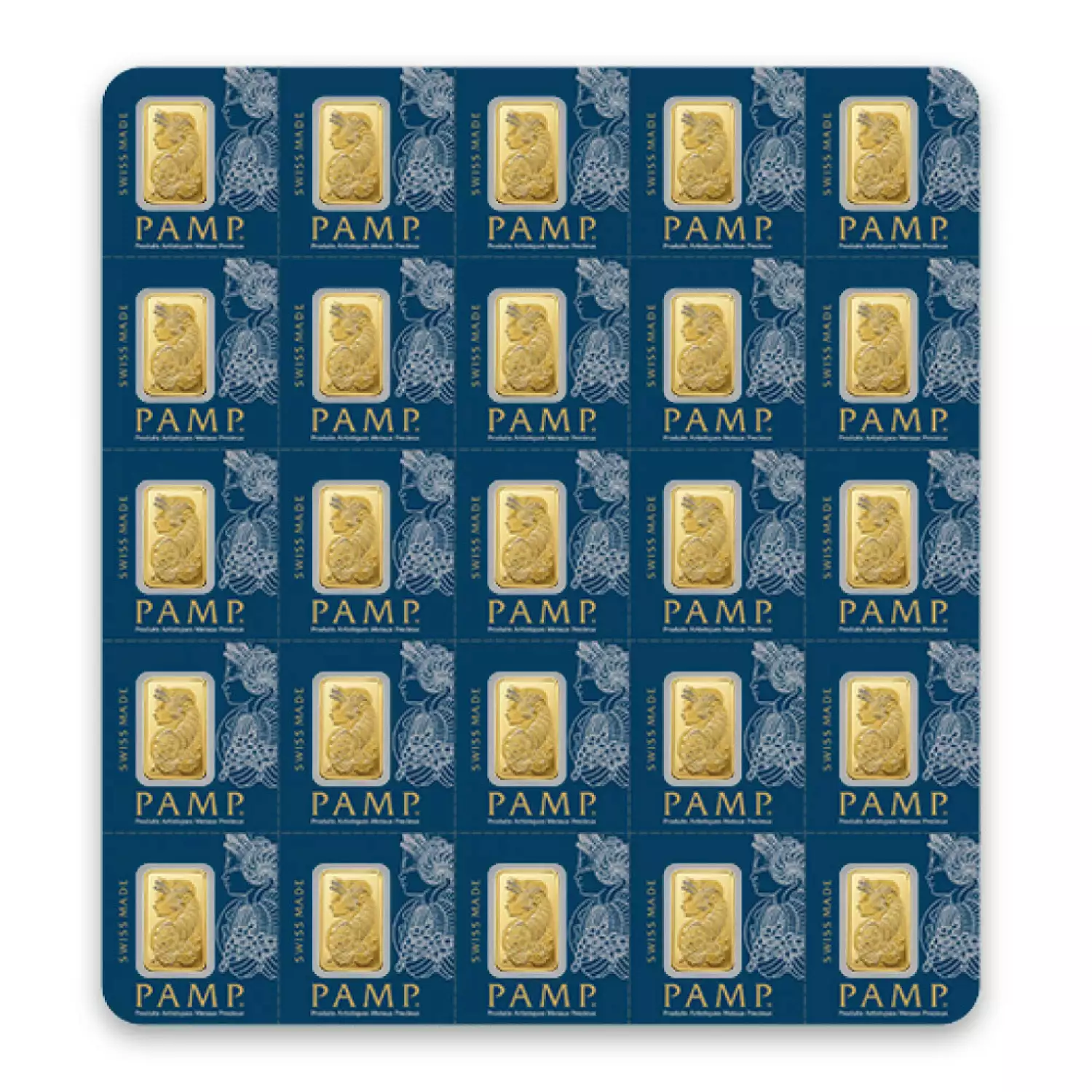 Each 1g x 25 PAMP Multigram is composed of 25 1 gram bars of .9999 actual gold.