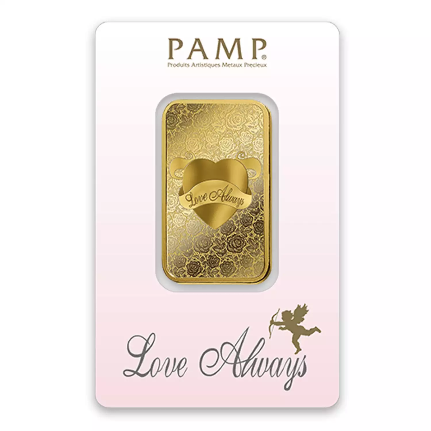 Buy the high-quality 1 oz PAMP Gold Bar - Love Always today from us online! You’ll find the recent gold price on our website.