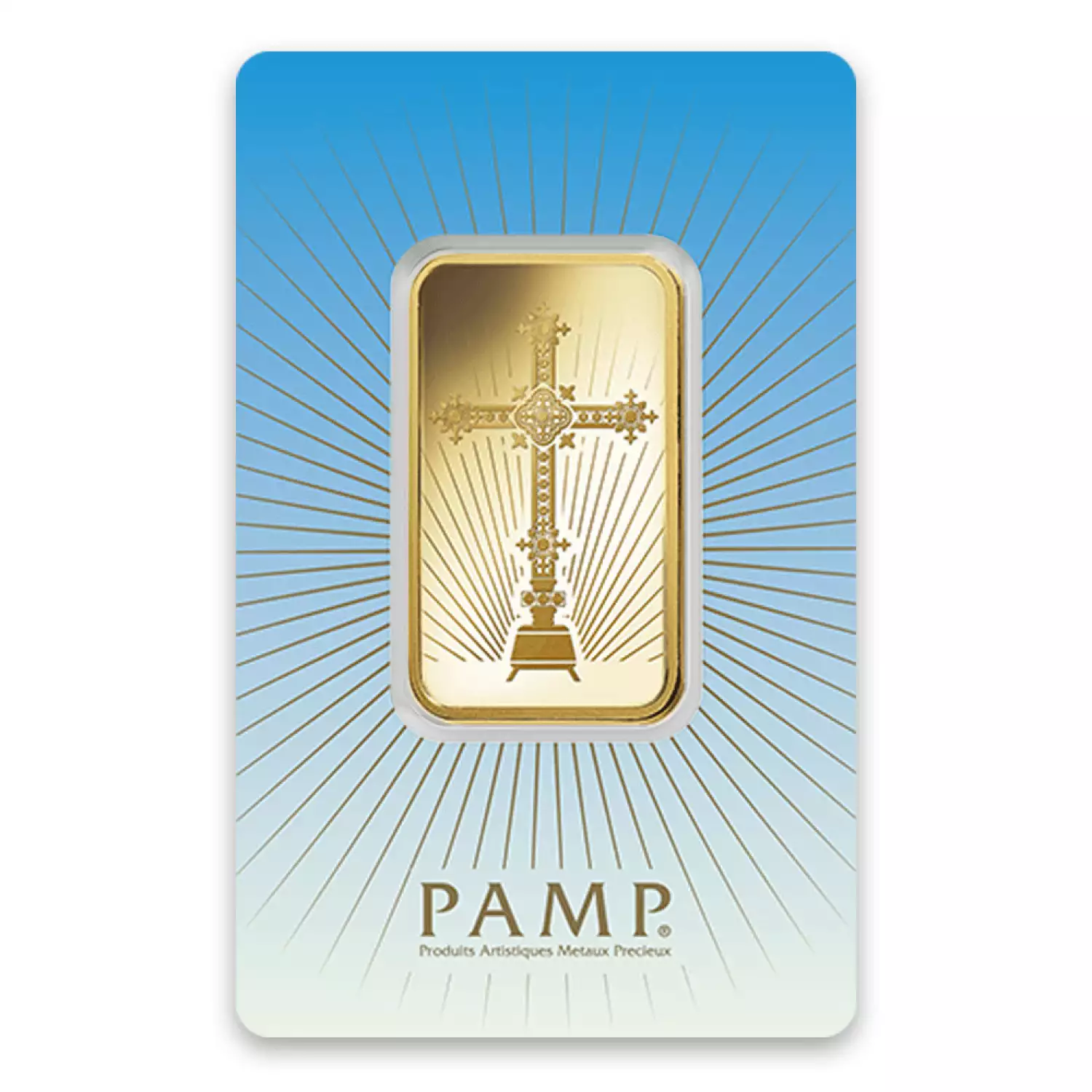 Buy the high-quality 1 oz PAMP Gold Bar - Romanesque Cross today from us online! The current gold price is updated on our website every minute.