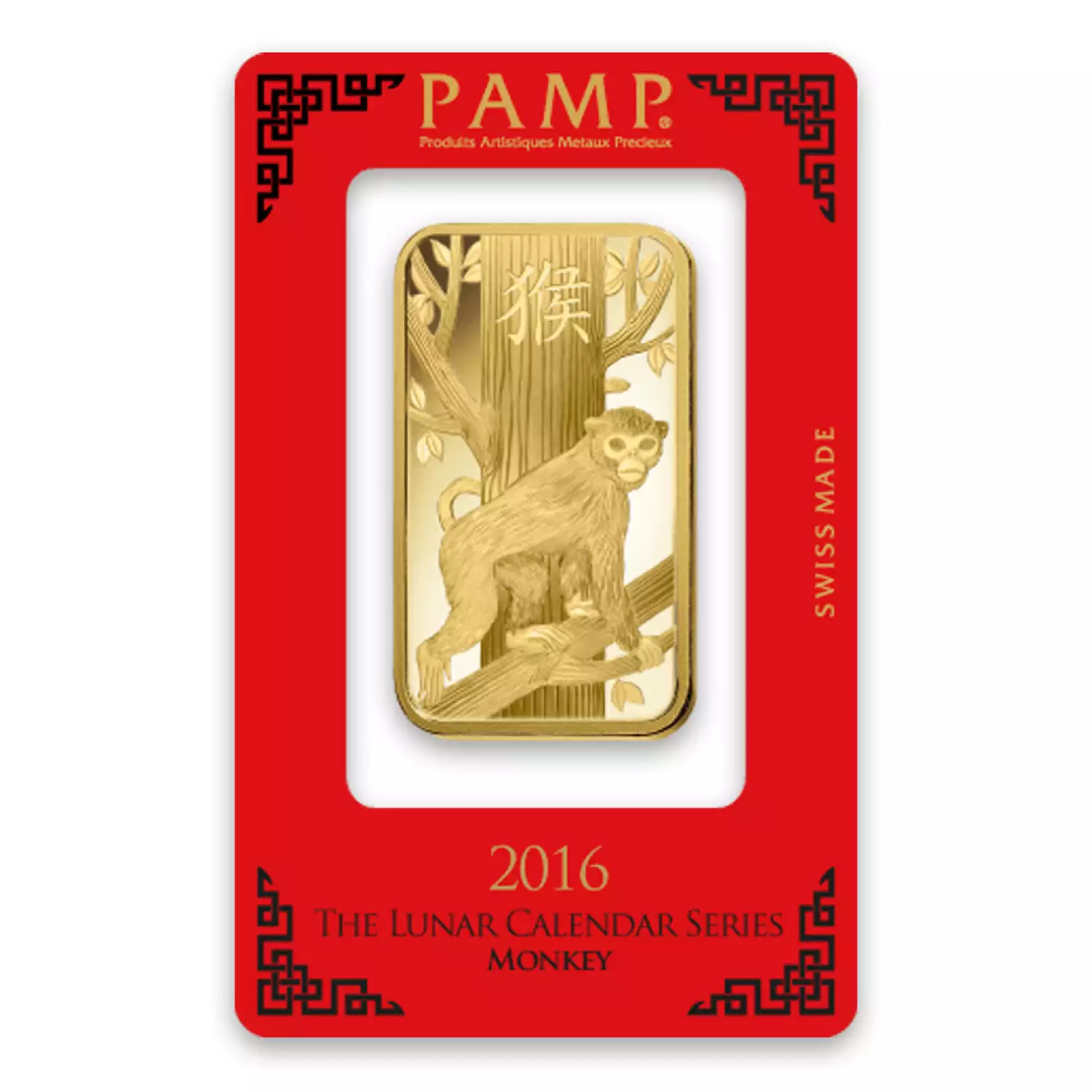 Buy the high-quality 100g PAMP Gold Bar - Lunar Monkey today from us online! You’ll find the recent gold price on our website.