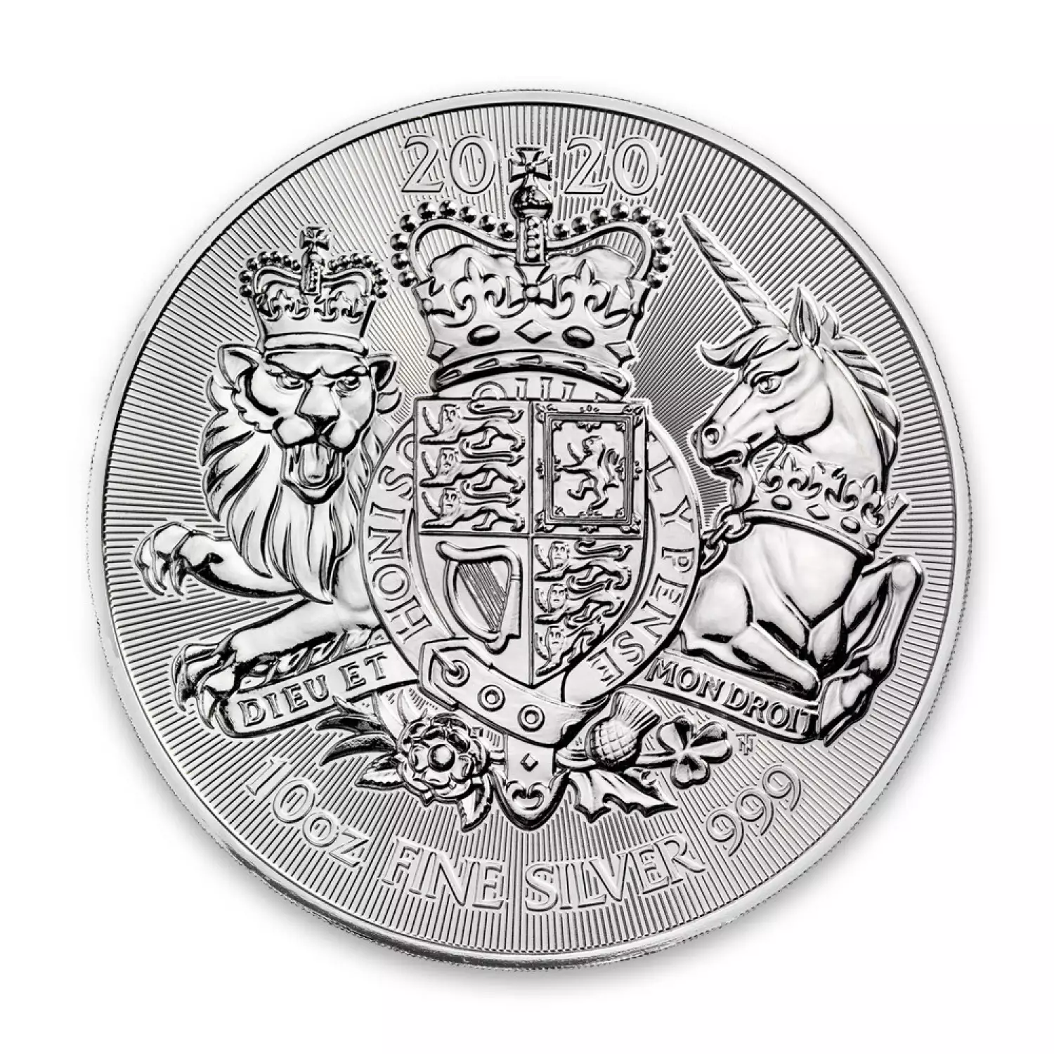 The design of the 2020 10oz British Royal Arms Coins it’s a reinterpretation by Timothy Noad and it’s based on the original design made by Eric Sewell in 1983. The reverse depicts a crowned shield along with the Lion of England on the left side and Unicorn of Scotland on the right side.