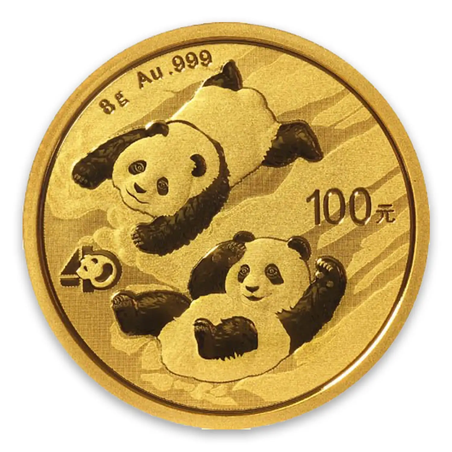 The 2022 8g Chinese Gold Panda coin is minted as .999 fine gold, 24 karat. The Chinese Gold Panda Coins differ from most other common gold bullion in two ways. First, the reverse design of the endangered panda bear changes annually (except for 2001 and 2002 which feature the same design) and second, each coin is minted as a limited edition. First minted in 1982, the Chinese Gold Panda Bullion Coin was greeted with great interest among collectors. This interest peaked in 1987 after which lower mint figures resulted in limited availability. The design of the Panda changes each year.