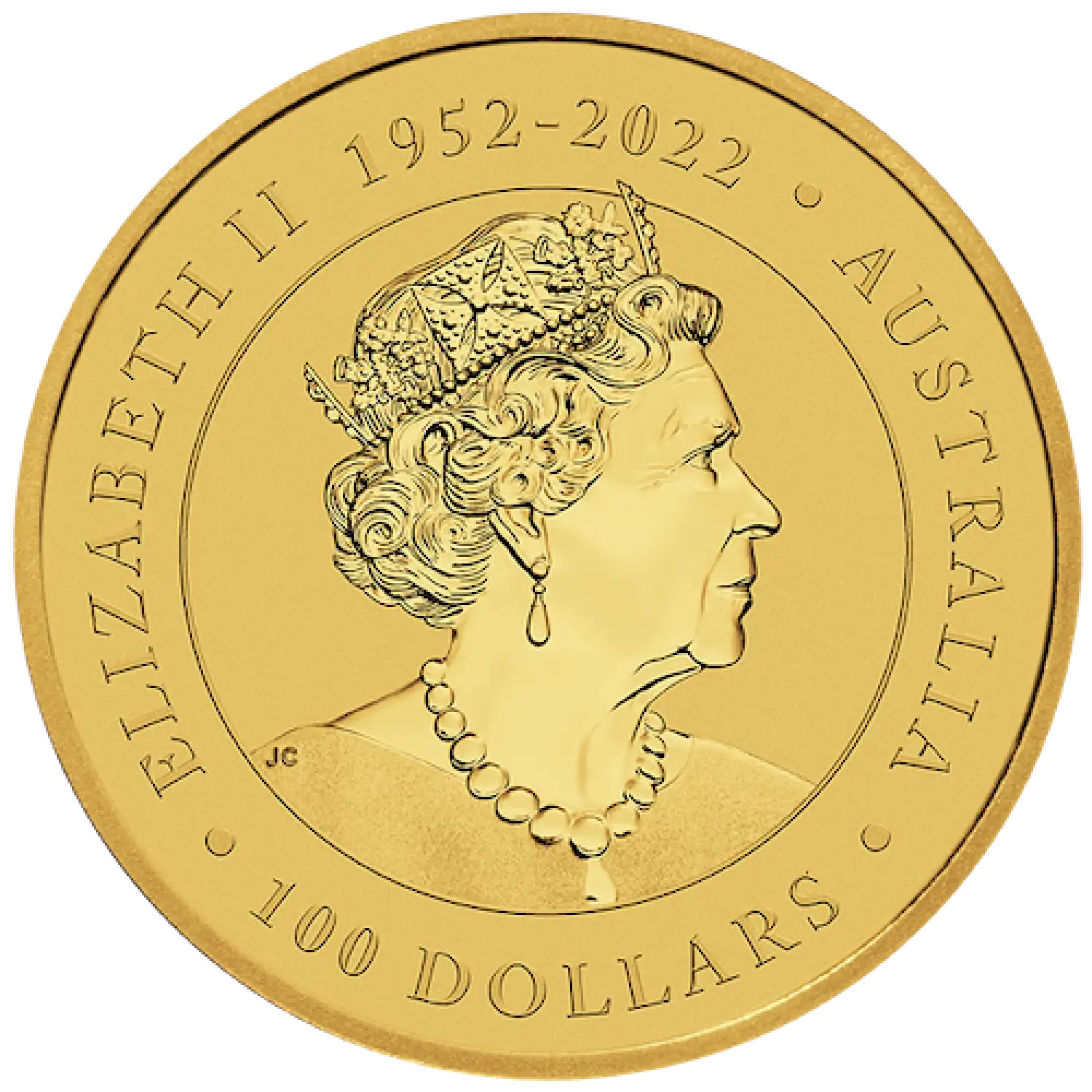 Originally known as the Gold Australian Nugget, the Bullion Kangaroo Coin is the one of the largest bullion coin program from the Perth Mint. The first 1 oz Australian Perth Mint Kangaroo Coin was released in 1991. The 2023 1 oz bullion coin is guaranteed by the Australian Government. The obverse features the Ian Rank-Broadley likeness of Queen Elizabeth II. The Reverse portrays a single iconic hopping red kangaroo surrounded by rays of sunlight.