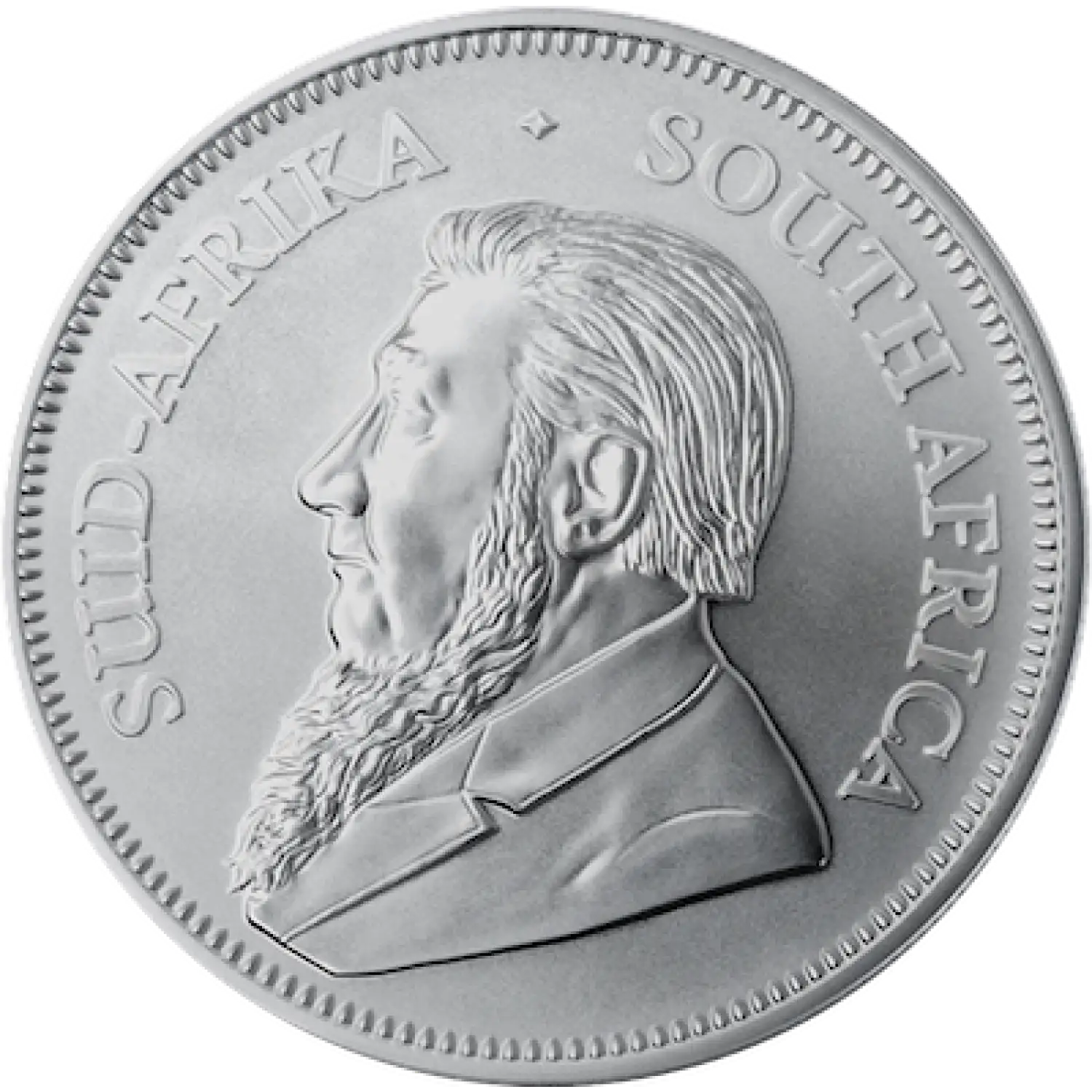 The reverse of this silver coin is the springbok, South Africa’s national animal. The Springbok or Antidorcas marsupialis is characteristic for its jumping ability. Modeled by the renowned South African sculptor, Coert Steynberg. On the obverse of the coin is Paul Kruger, South Africa's famous leader. The word "Krugerrand" is derived from Paul Kruger and the rand, the monetary unit of South Africa, which is associated with the Witwatersrand ‚the ridge of white water‘ – the gold producing area discovered in 1886 in South Africa.