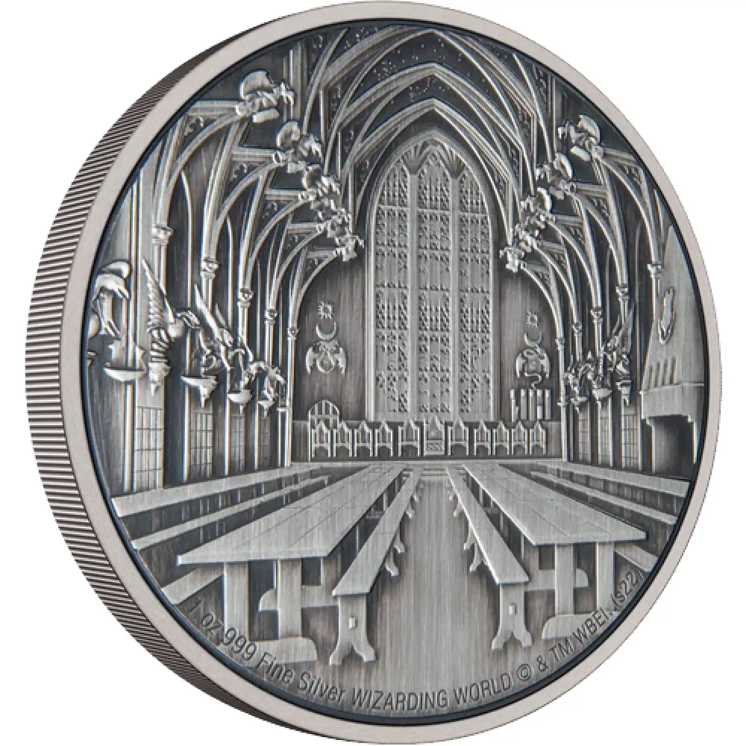 This 1oz silver coin features a fully engraved image of the Great Hall in the Hogwarts™ Castle from HARRY POTTER™. It has been antiqued and includes some relief to add extra charm to the design.