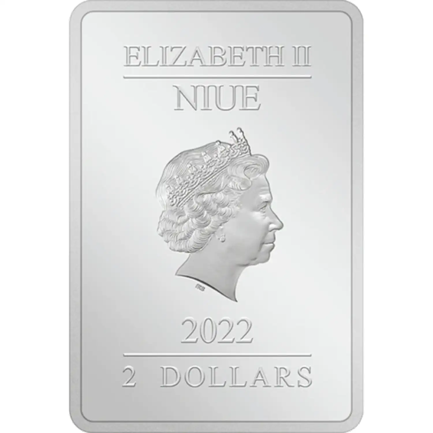 Made of 1oz pure silver, this rectangular coin replicates the theatrical poster for the third film in the fantasy trilogy, The Return of the King. The striking image is mostly in colour, but as a great contrast, Gollum, Andúril and the film’s logo have been engraved and frosted. A mirror-finish border completes the wonderful design. To confirm it as a legal tender coin, the obverse displays the effigy of Queen Elizabeth ll.