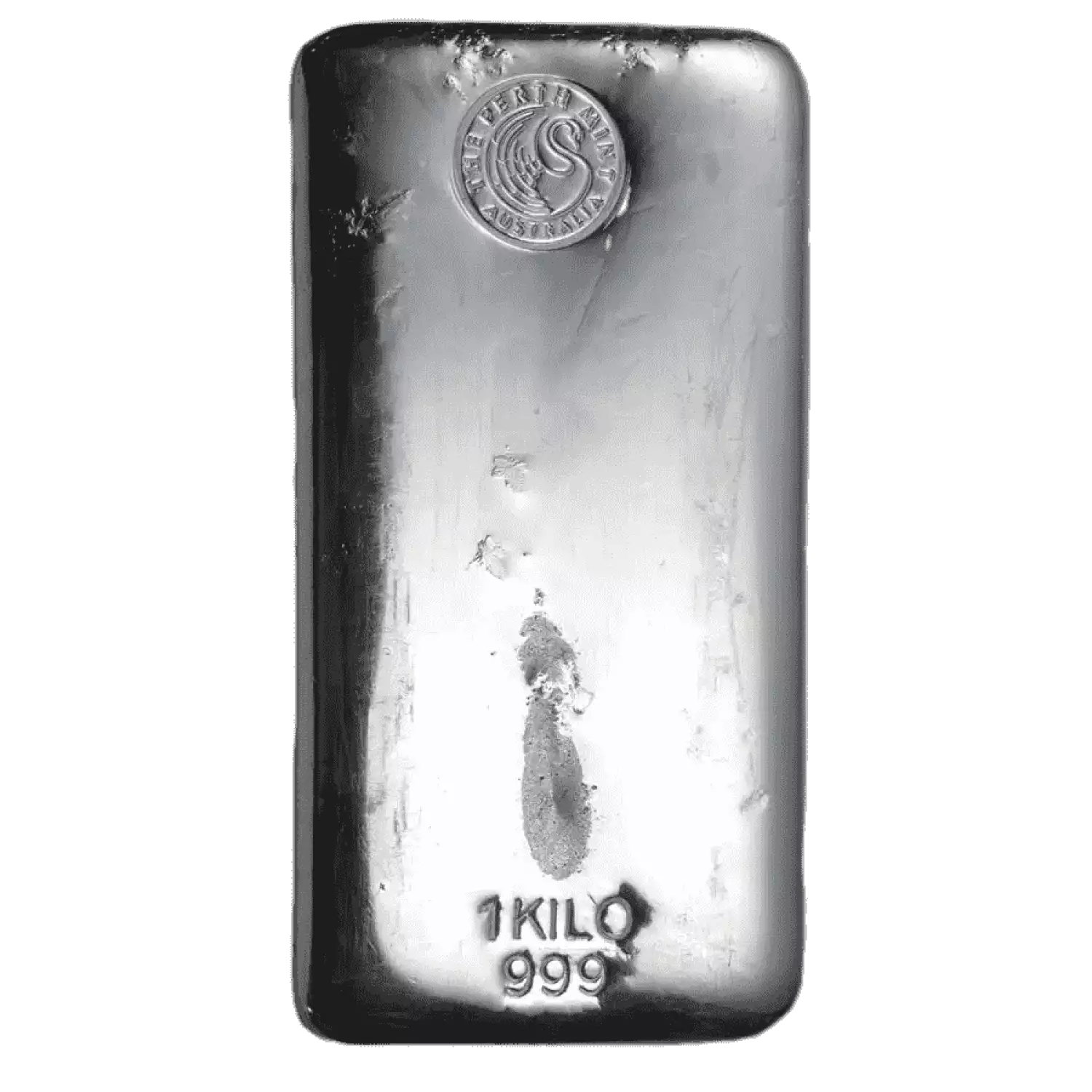 These kilo Silver bars are made by the world-renowned Perth Mint. Large format bars make for an easy way to acquire larger amounts of .999 fine Silver with just one purchase at a lower cost / oz.
