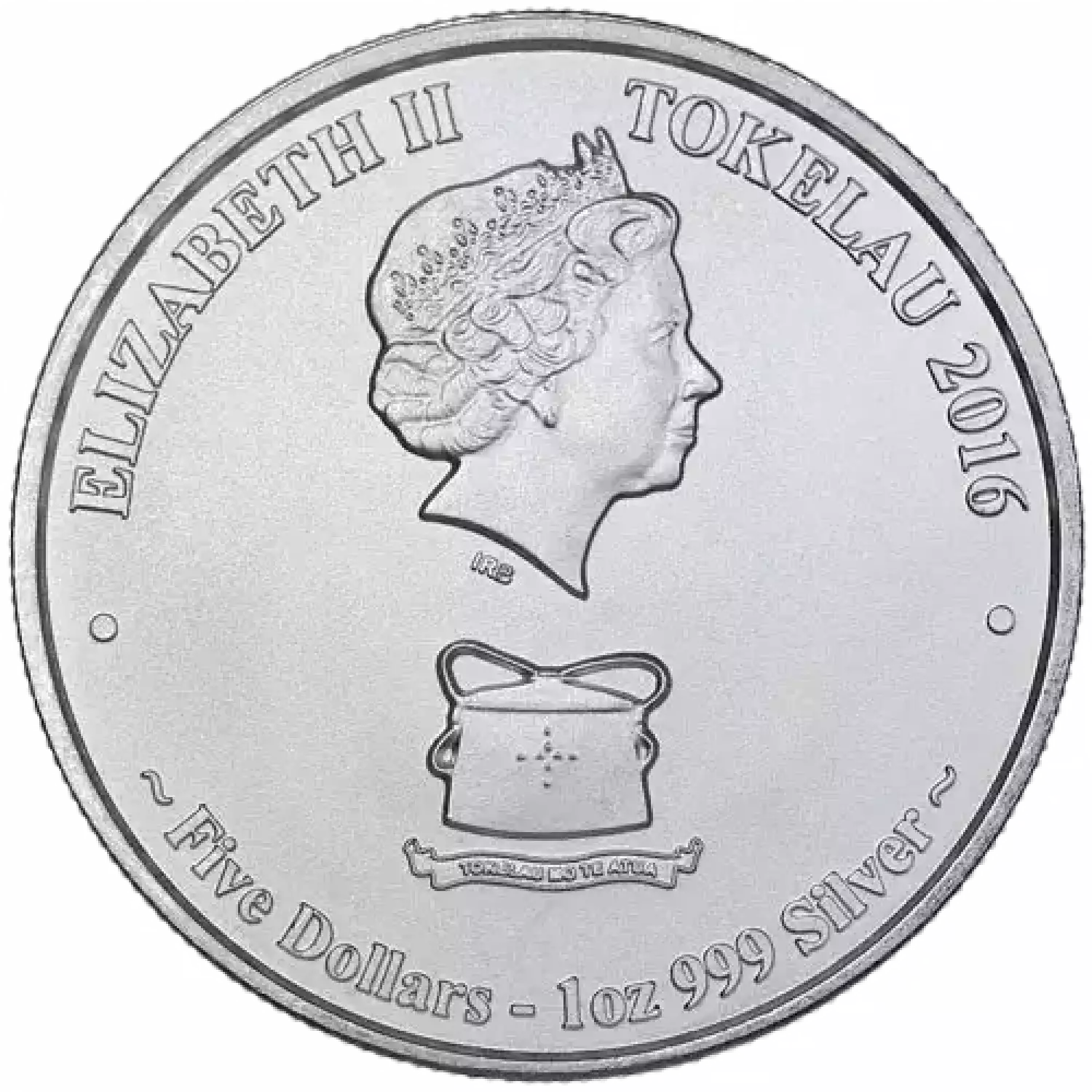 The obverse features the right-profile portrait of Queen Elizabeth II from Ian Rank-Broadley, as well as the image of a wooden tacklebox, traditionally used by fishermen from Tokelau. A small banner below the box contains the words “Tokelau mot e Atua,” which translates to “Tokelau for God.”