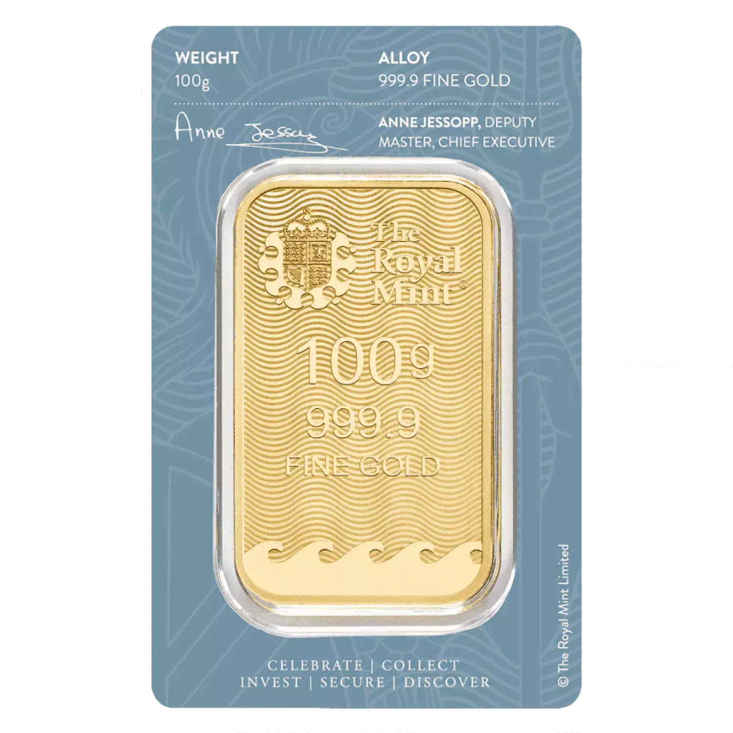 The 100g Gold Britannia Bar is one of the most popular gold bars produced by the Royal Mint, and it's a highly sought-after investment product among investors and collectors alike. Here are some bullet points describing why it's so popular, as well as its specifications: