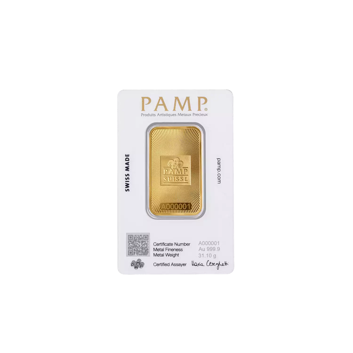 The PAMP Suisse 9999 Pure 1oz Gold Bar is a meticulously crafted and highly sought-after gold bullion product. Produced by the prestigious PAMP Suisse, a renowned Swiss precious metals refinery, this gold bar exudes exceptional quality, purity, and craftsmanship. PAMP Suisse is globally recognized for its commitment to excellence, making their gold bars highly trusted and valued by investors and collectors alike.