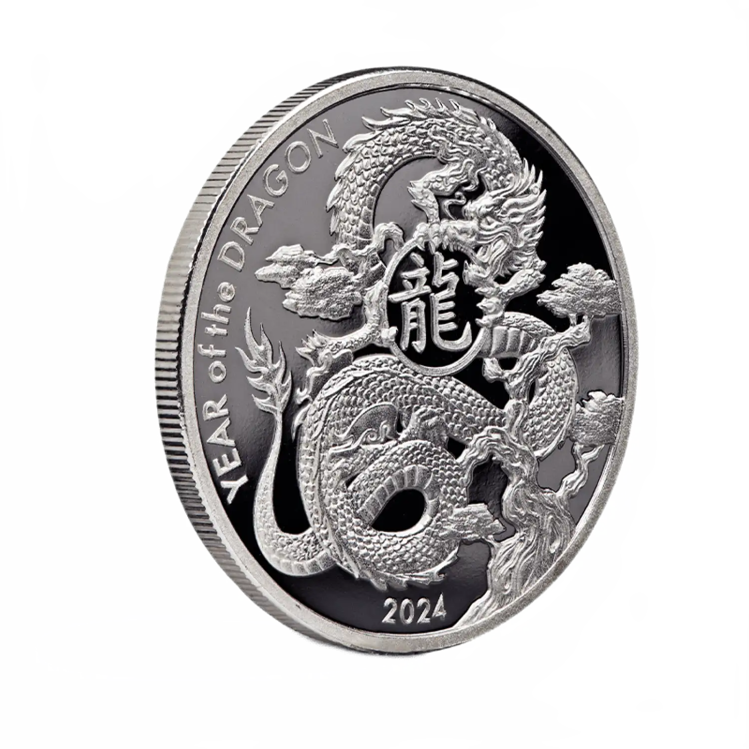 Reverse: Features the illustrious Wood Dragon gracefully wrapped around a Cypress Tree.