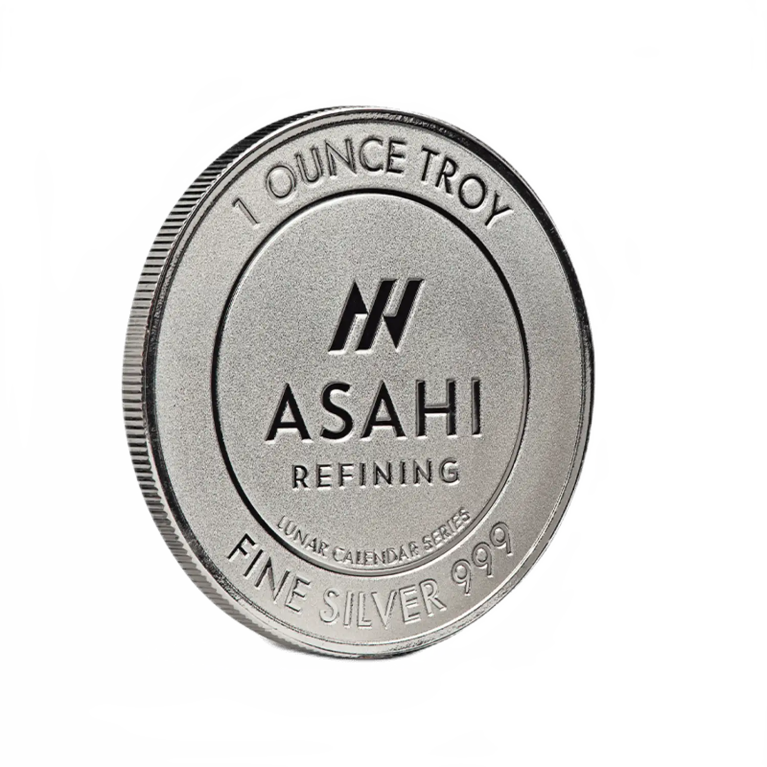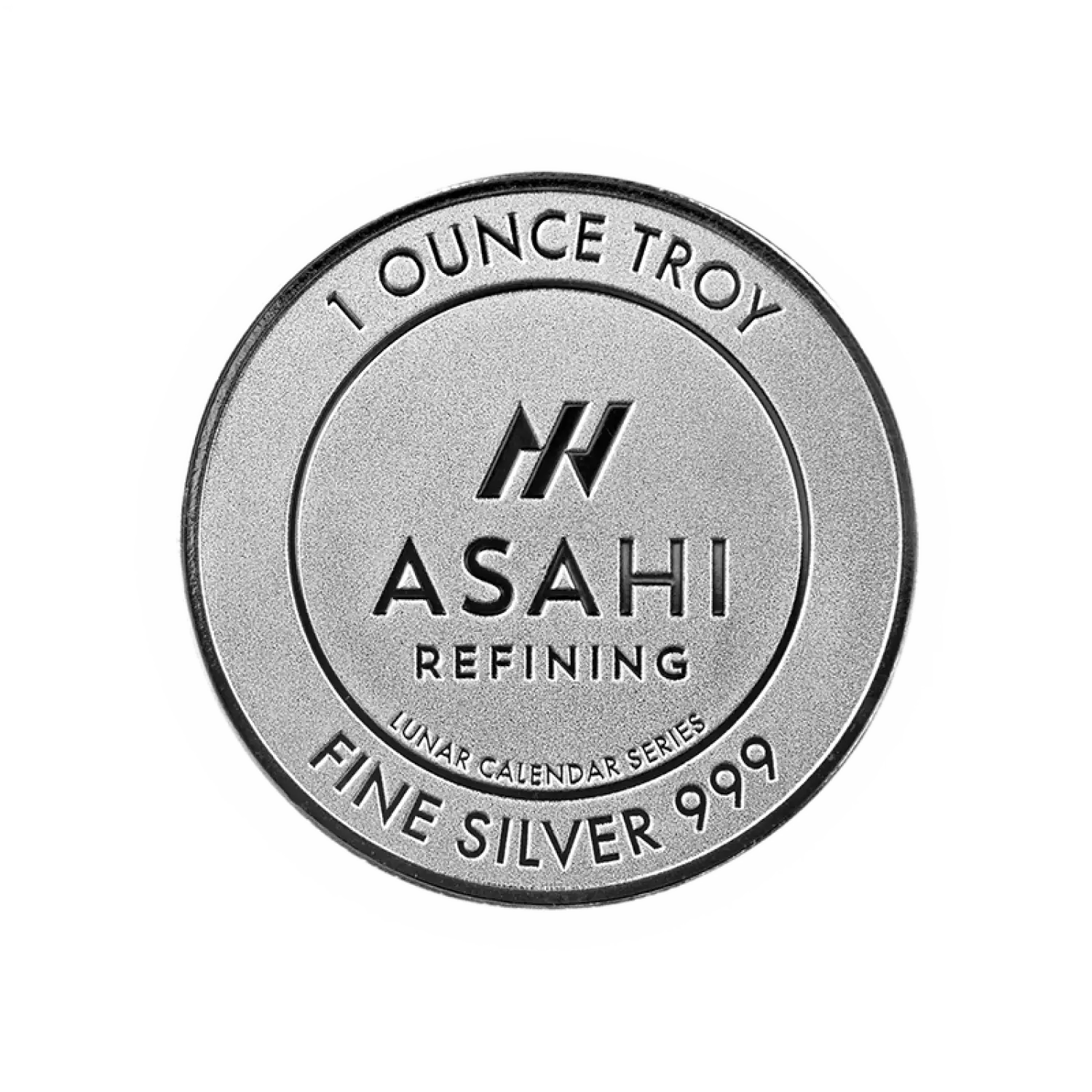 Obverse: Features a centered Asahi Refining logo along with metal type, weight, purity, and "LUNAR CALENDAR SERIES" inscription