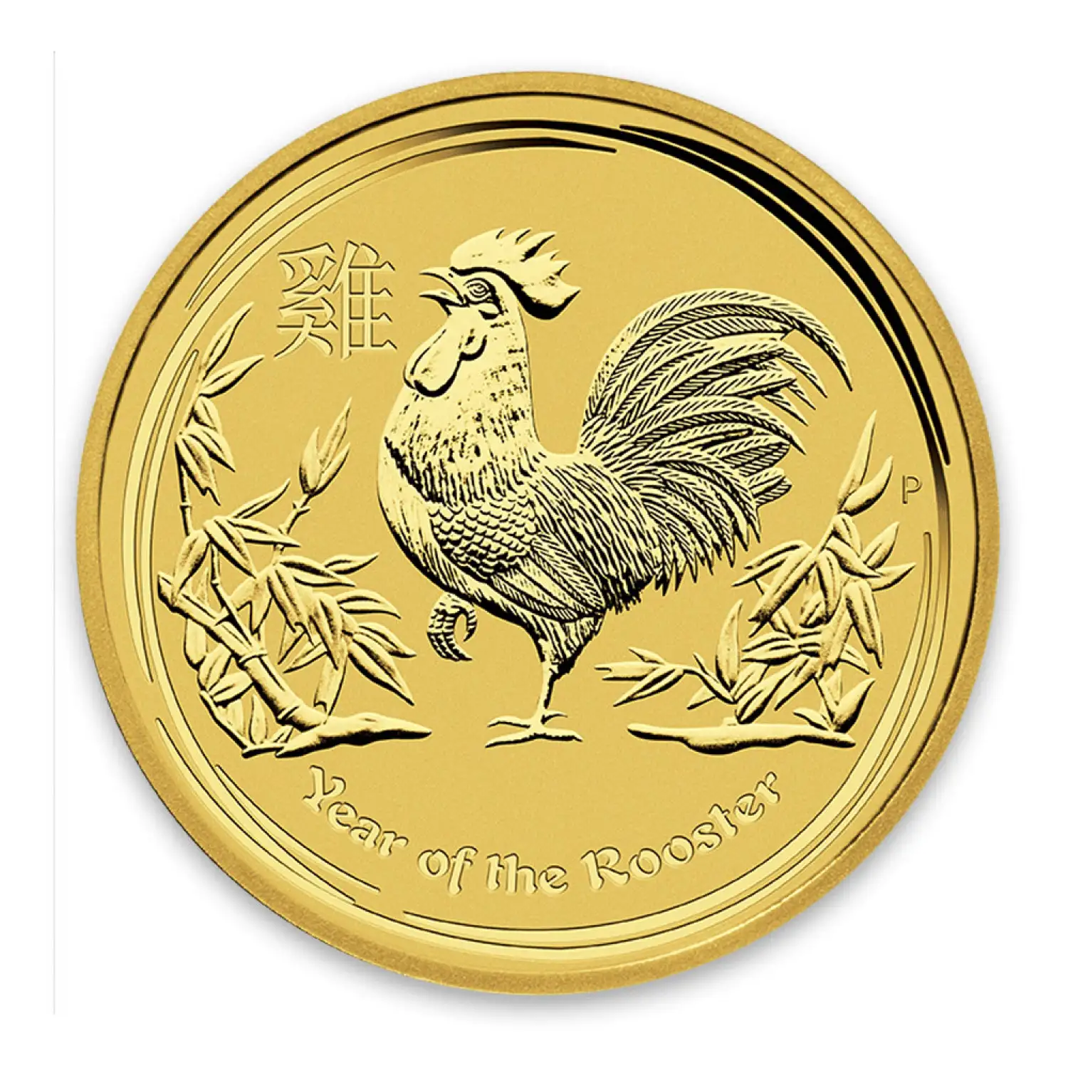 The Obverse of this Perth Mint Year of the Rooster coin features the Ian Rank-Broadley likeness of Her Majesty Queen Elizabeth II and the Reverse displays a rooster standing in a stylized Chinese scene featuring bamboo and leaves in the field of the coin. The beloved design of the 2017 Lunar Coin is composed of 1 oz of .9999 pure gold and has a mintage of just 30,000 coins.