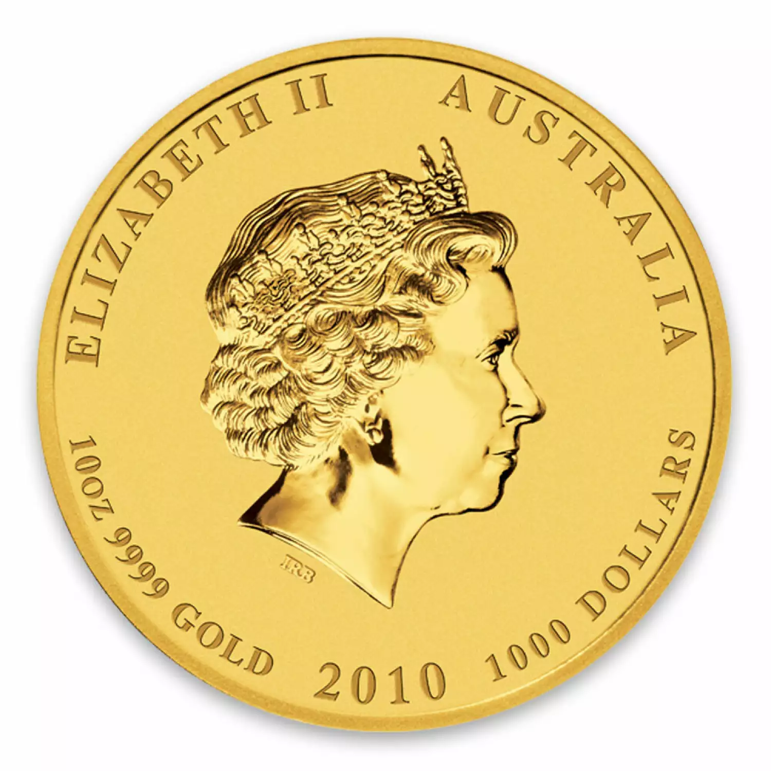 The 2010 10oz Australian Perth Mint Gold Lunar II: Year of the Tiger is struck from .9999 fine gold with a weight of 10 troy ounces. This bullion coin is minted by the Perth Mint and is guaranteed by the Federal Government of Australia.