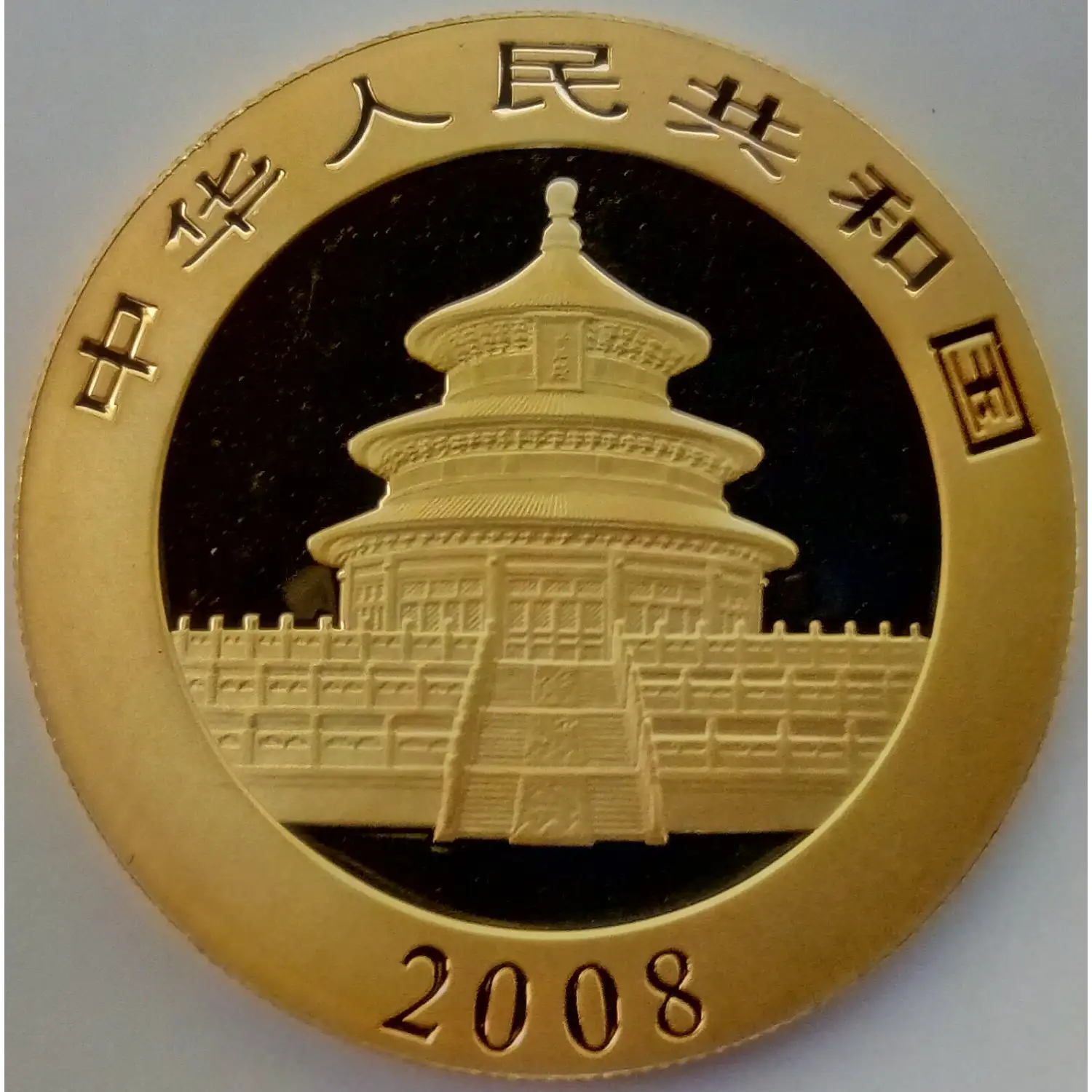 The 2008 Chinese Panda Gold coin is minted as .999 fine gold, 24 karat.