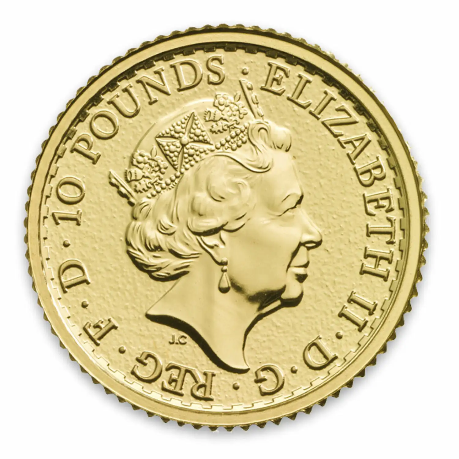 The 1/10 oz 2017 British Gold Britannia is one of the most popular investment coins in the world. This stunning gold coin contains 0.1 troy ounce of .9999 fine gold