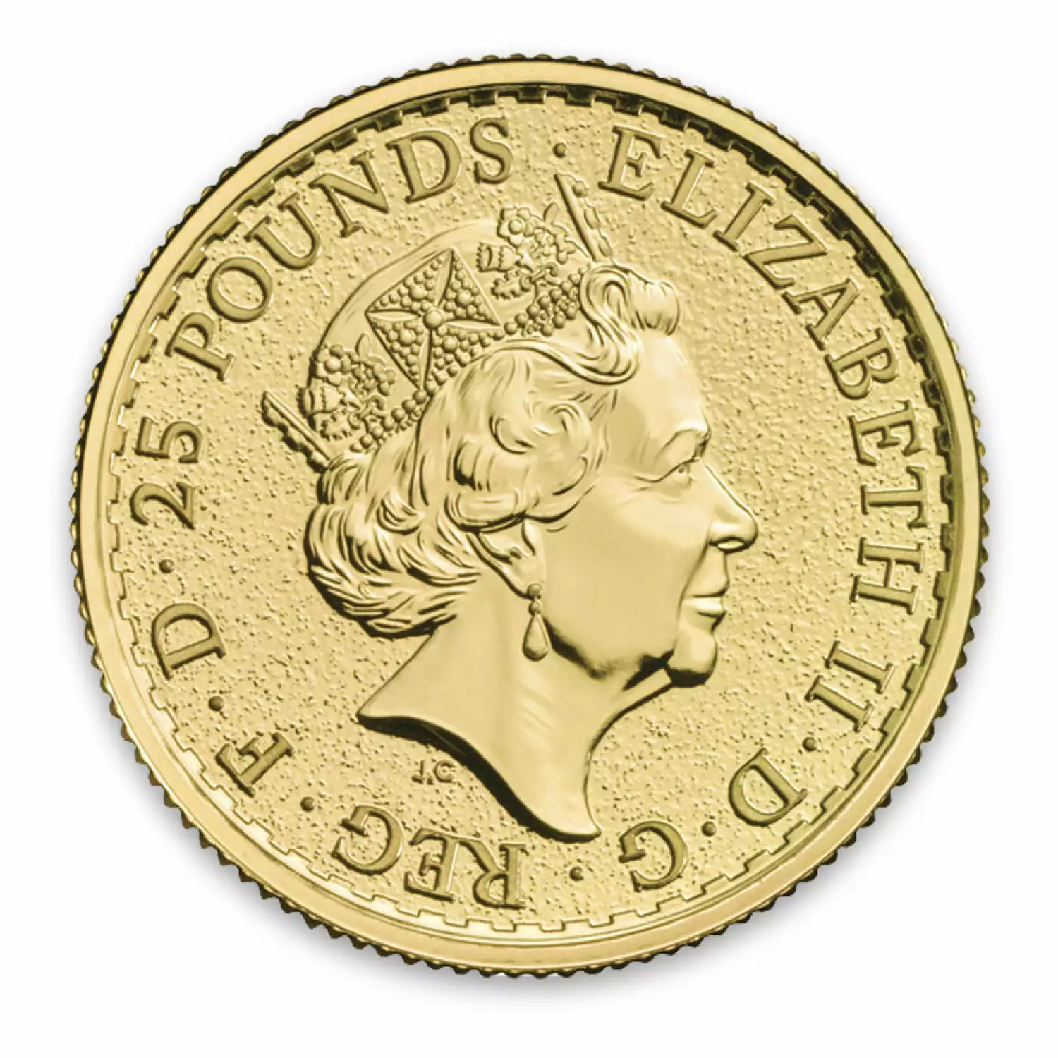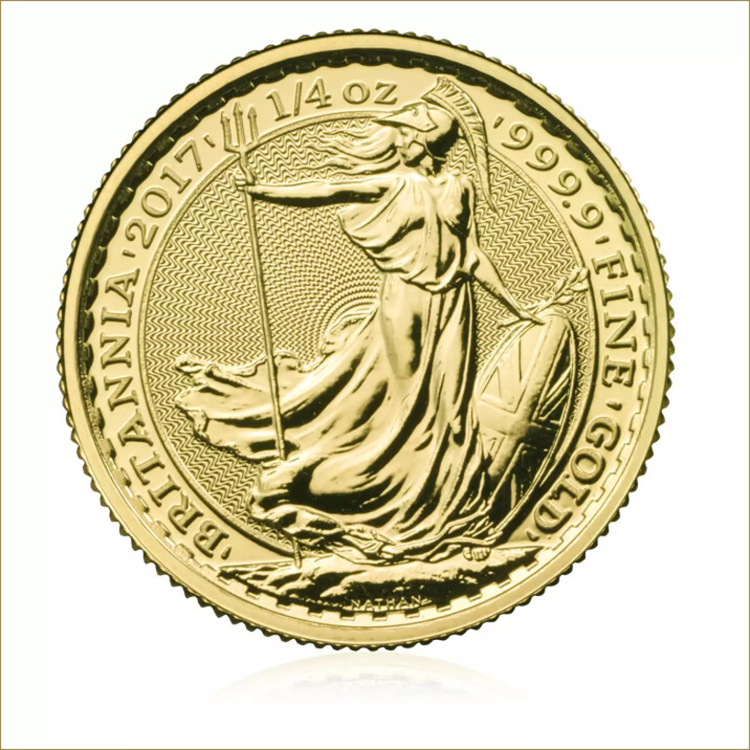The ¼ oz British Gold Britannia is one of the most popular investment coins in the world. This stunning gold coin contains 0.25 troy ounce of .9999 fine gold.