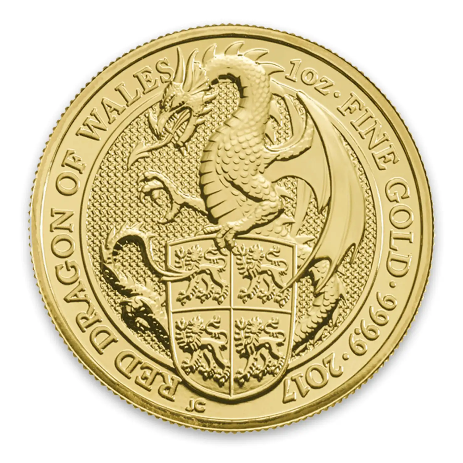 The 1 oz 2017 Britain Queen's Beasts: The Dragon is made of .9999 fine gold and weighs 1 Troy oz. This is the third release in the Queens Beast Series and issued a face value of 100 (GBP) by the British government.